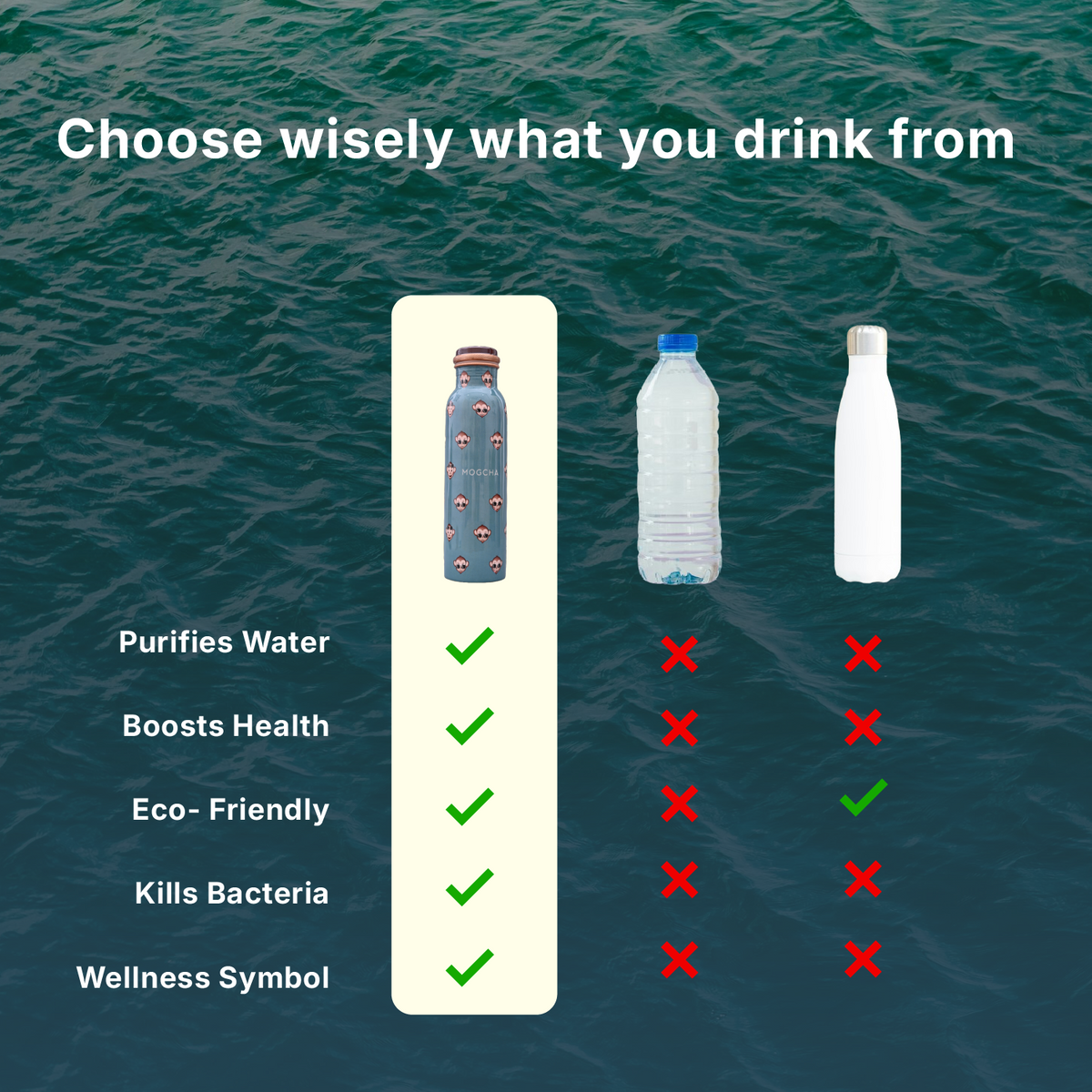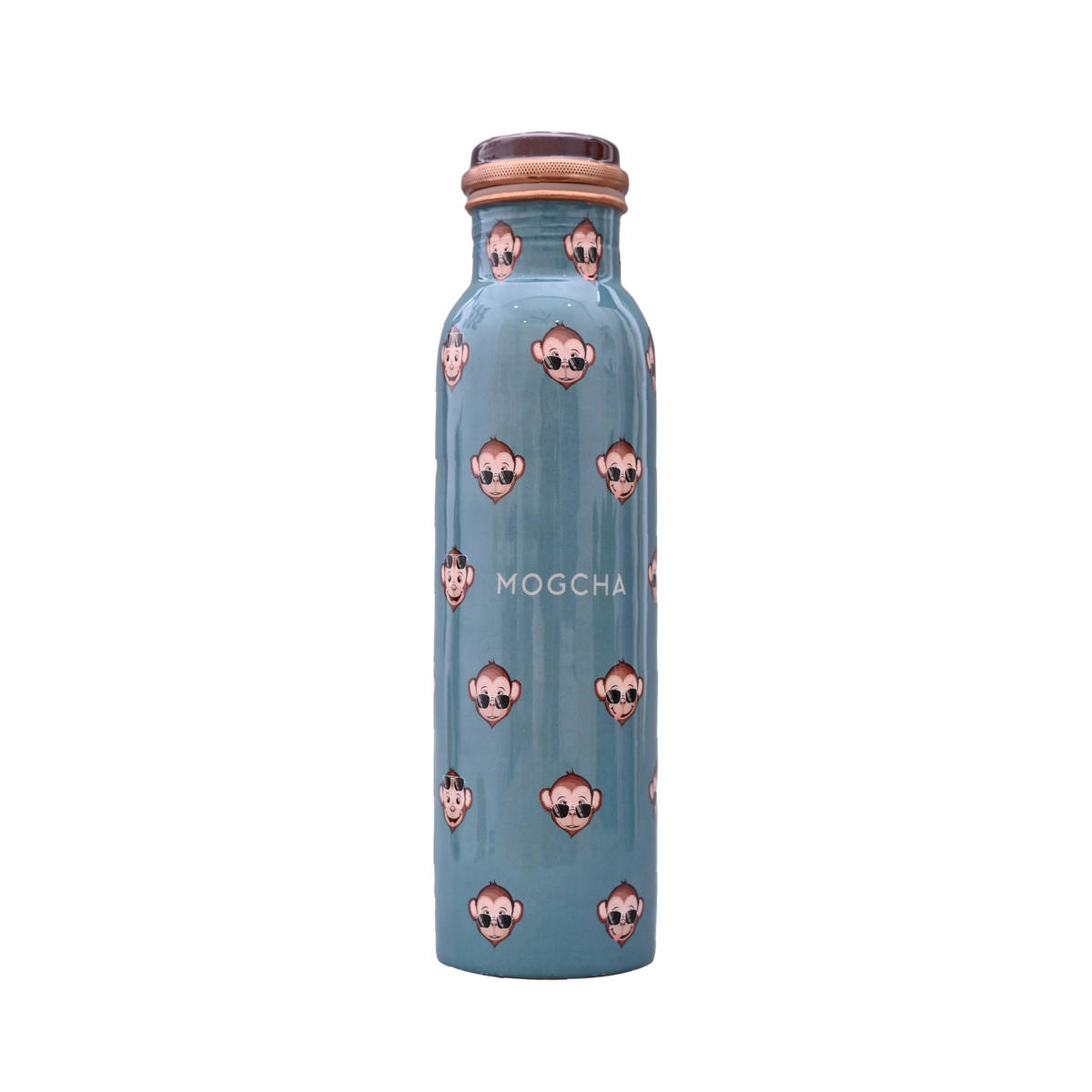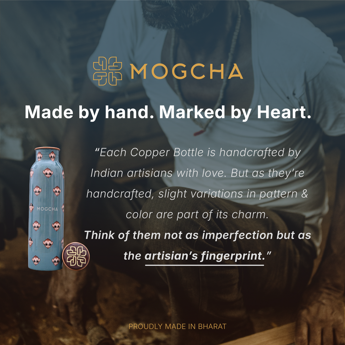 MOGCHA monkey printed is a leakage & rust proof water bottle. And is handcrafted with 99.9% pure copper that gives it luxurious look. Drinking from copper water bottle offers multiple health benefits that enrich your everyday wellness, like enhancing skin, boosting immunity, and other many benefits.